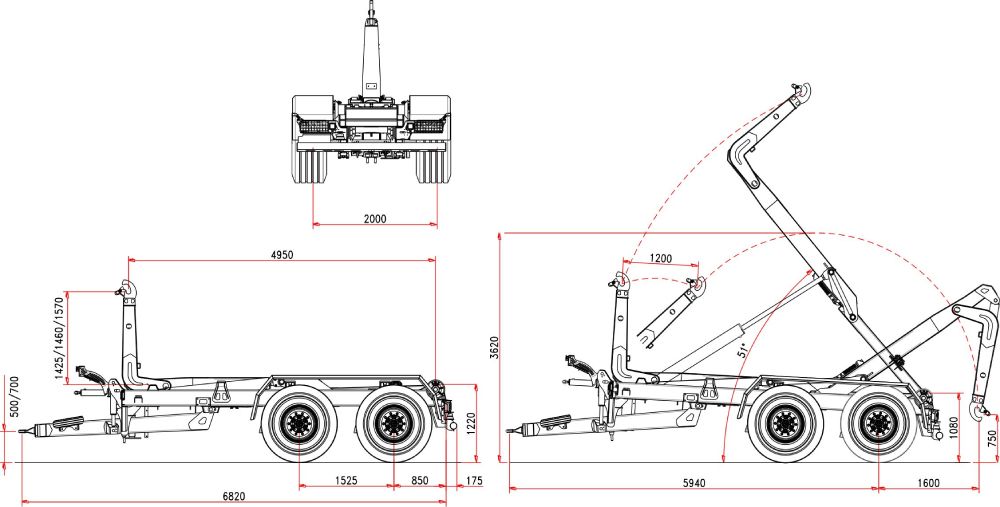 2 AXLES HOOKLIFT TRAILER ITR 18.23H ARTICULATED HYDRAULIC